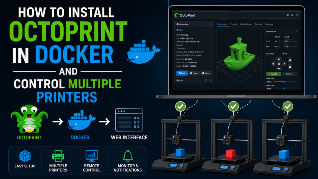 Today, I will explain how to install multiple Octoprint instances in a docker container with multi webcam support.
